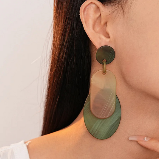 Vintage Groene Acryl Hangende Oorbellen - Lara