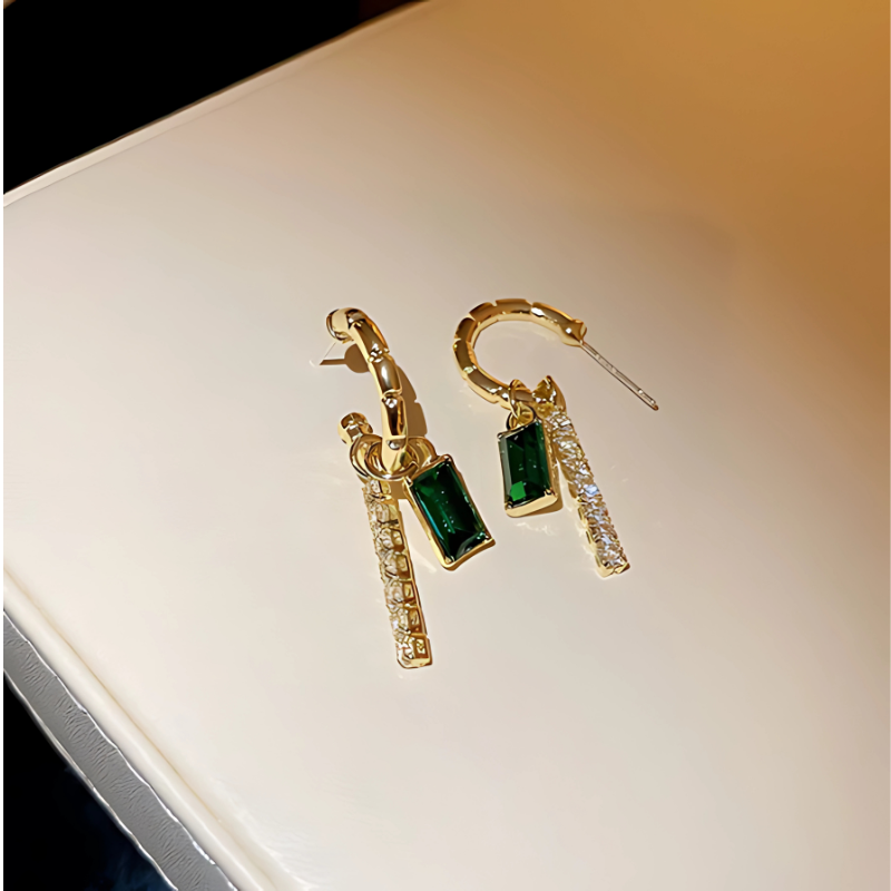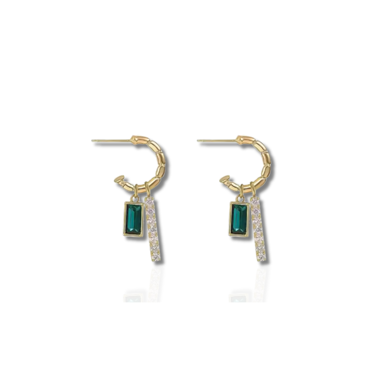 Deze elegante Gouden Geometrische Oorringen met Groene Kristal - Greta, perfect om een vleugje verfijning toe te voegen aan elke look.