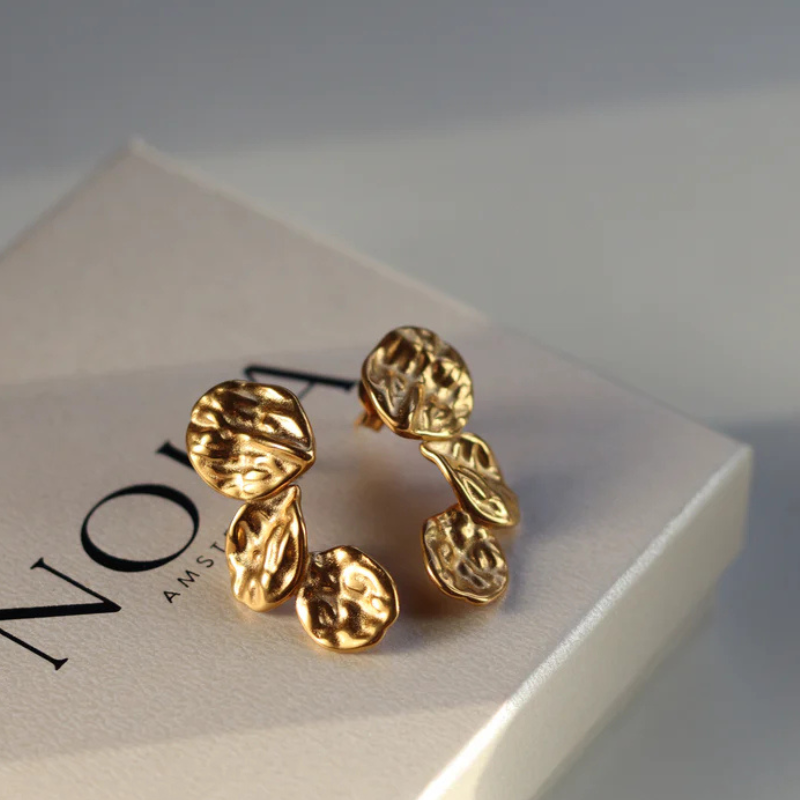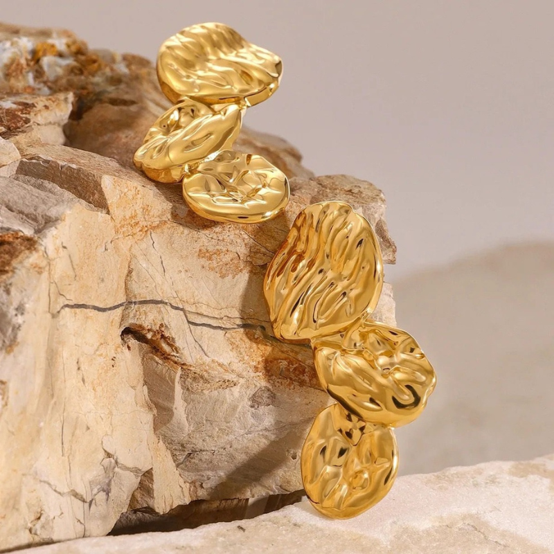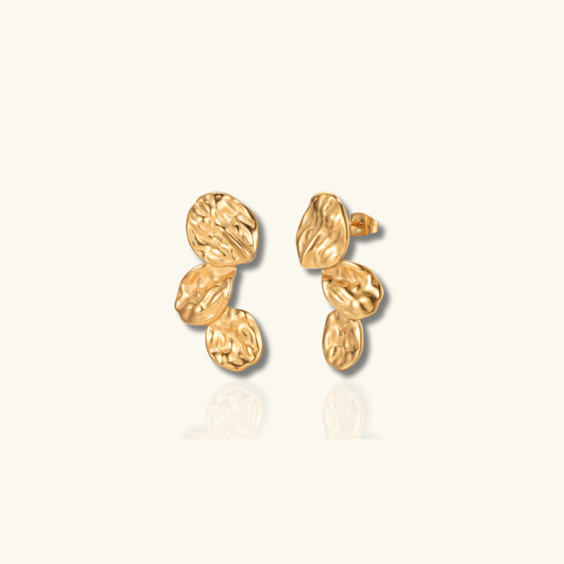 Voeg een vleugje elegantie toe met deze Triple Petal Oorbellen, met een structuur van 18k verguld roestvrij staal. Waterdicht, zweetbestendig en hypoallergeen, ze zijn perfect om van dag tot nacht te dragen.