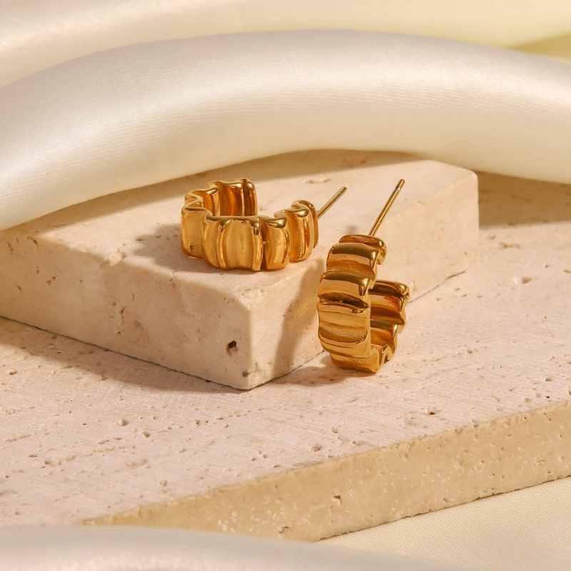 Verhoog je alledaagse stijl met deze gouden oorbellen met rimpelstructuur - Olivia - perfect voor minimalistische of gelaagde looks.