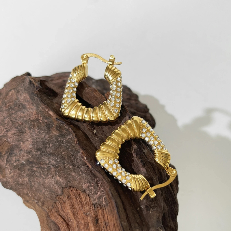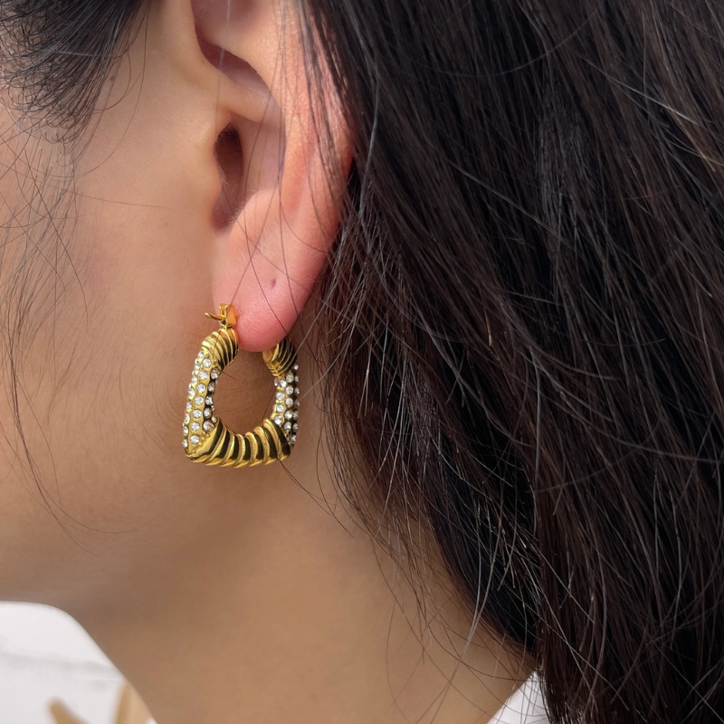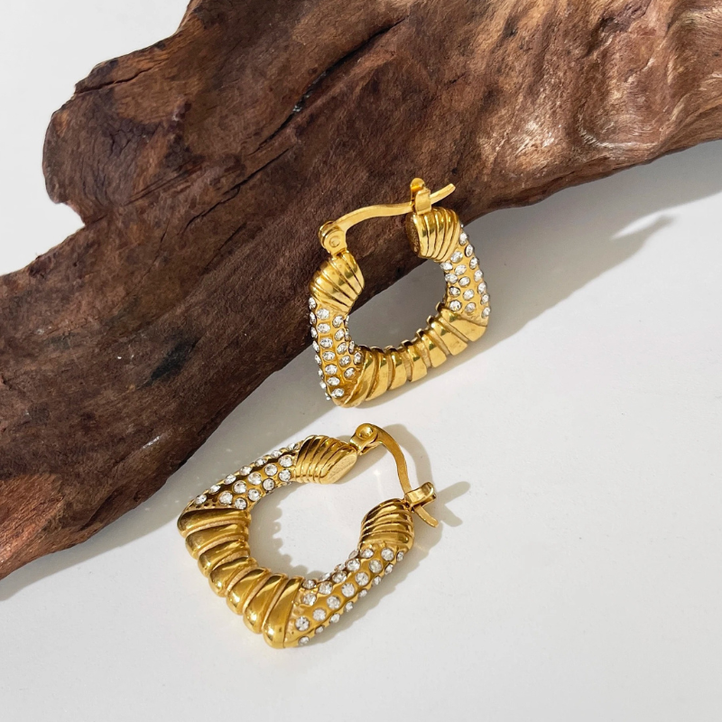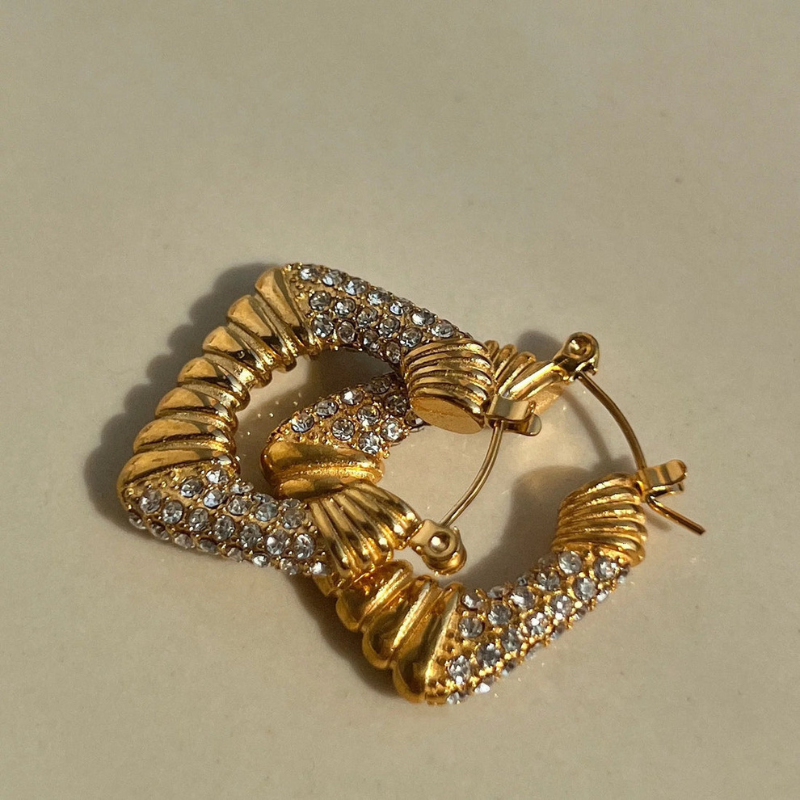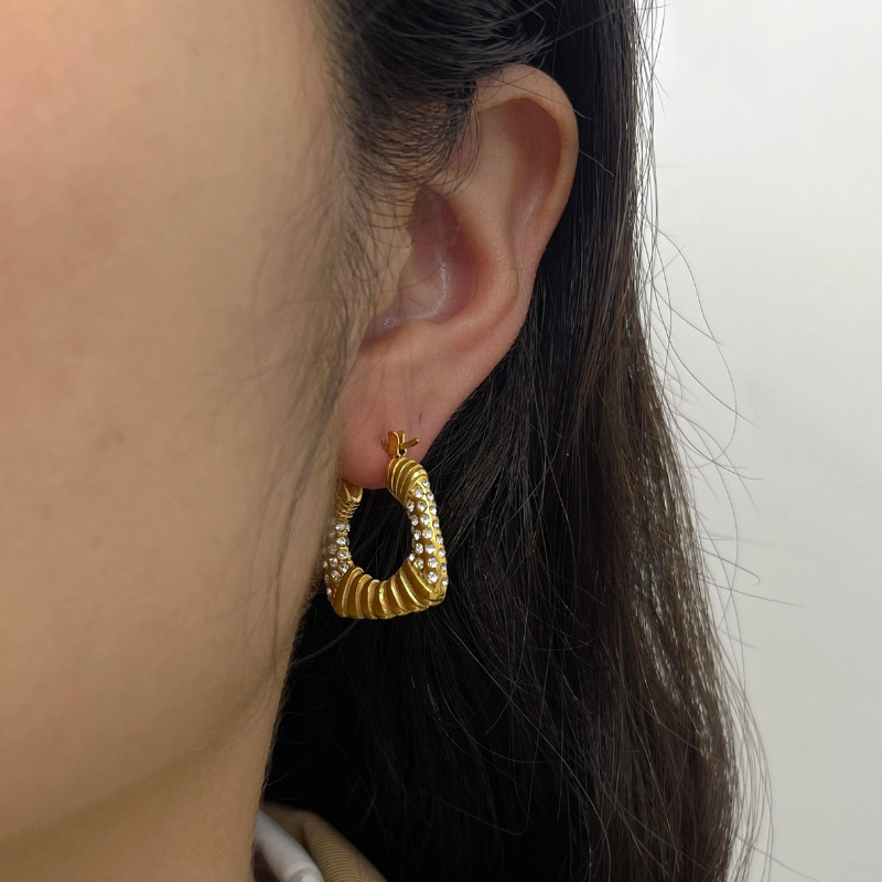 Maak een opvallend statement met deze Gouden Vergulde Kristallen Hoepel Oorbellen - Annette, ideaal voor feestjes, evenementen en stijlvolle dagelijkse looks. Combineer met gelaagde gouden kettingen of cocktailringen voor een glamoureuze afwerking.