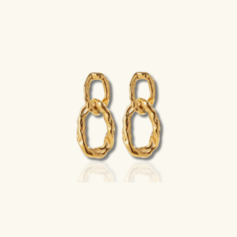 Goudkleurige oorbellen met dubbele ketting en textuur – Bianca