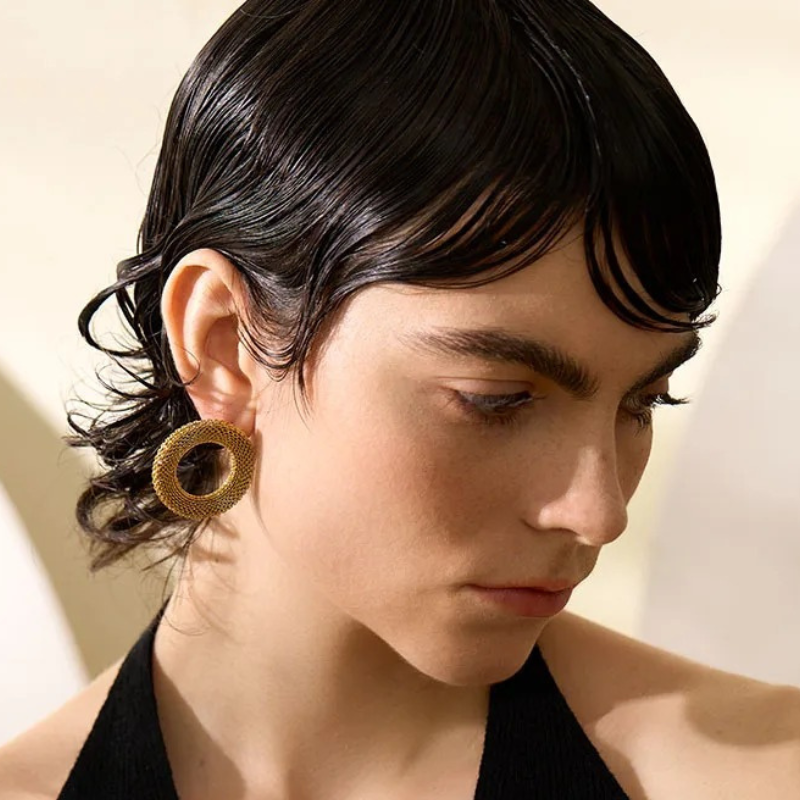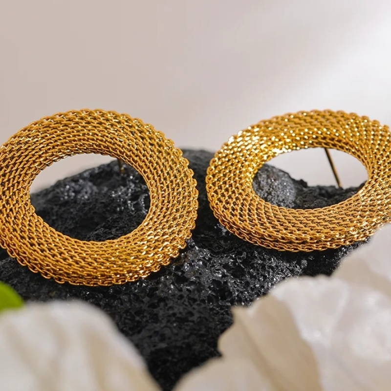 Grote Ronde Oorknopjes met Schakelstructuur – Faye