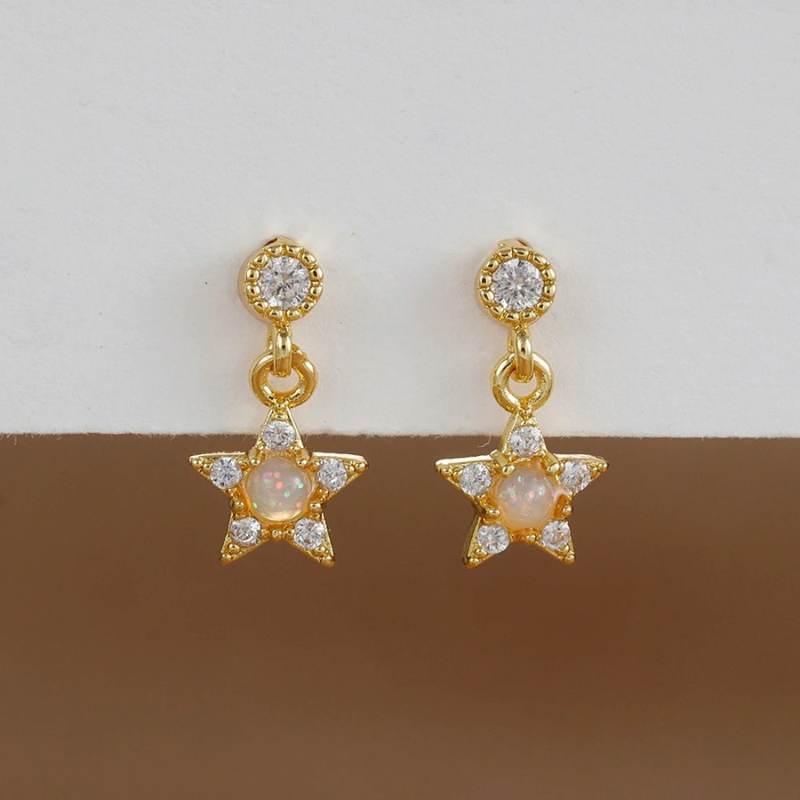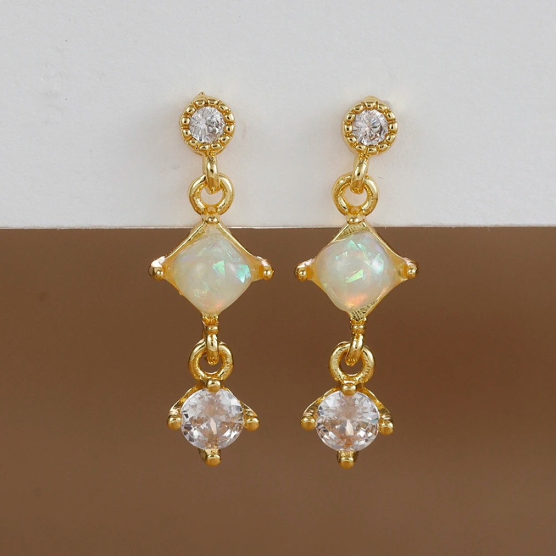 Verfraai je elegantie met deze opalen oorbellen. Ze zijn perfect om dagelijks te dragen of voor speciale gelegenheden. Combineer ze met delicate gouden kettingen voor een verfijnde look.