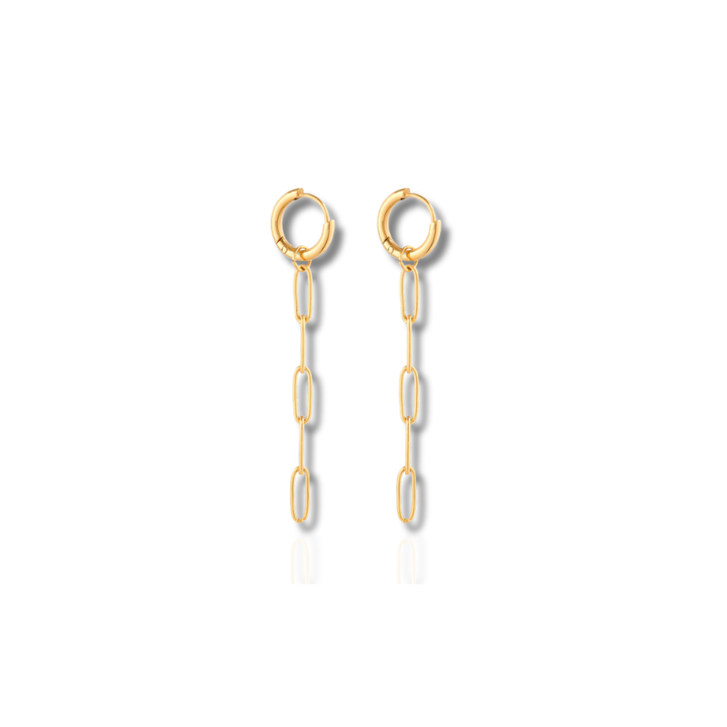 Deze elegante druppeloorbellen met ketting hebben een minimalistisch design met 18k goudplating, perfect om een subtiel maar stijlvol accent toe te voegen aan elke outfit.