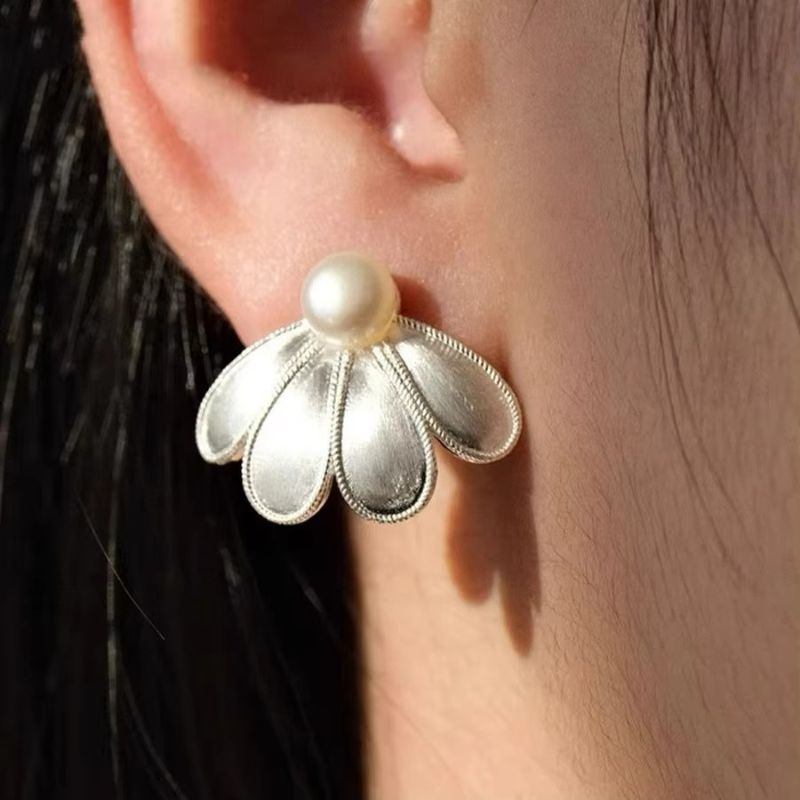 Ontdek de Madeliefjes Oorbellen van geborsteld koper en zoetwaterparels. Tijdloze elegantie, Perfect voor dagelijks gebruik. Bewaar droog en combineer met parelaccessoires voor een complete look.