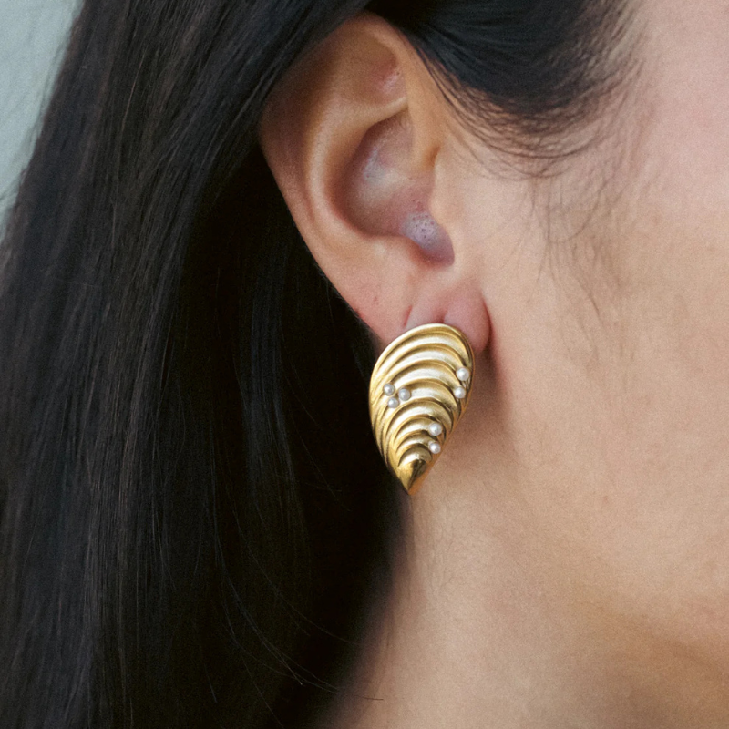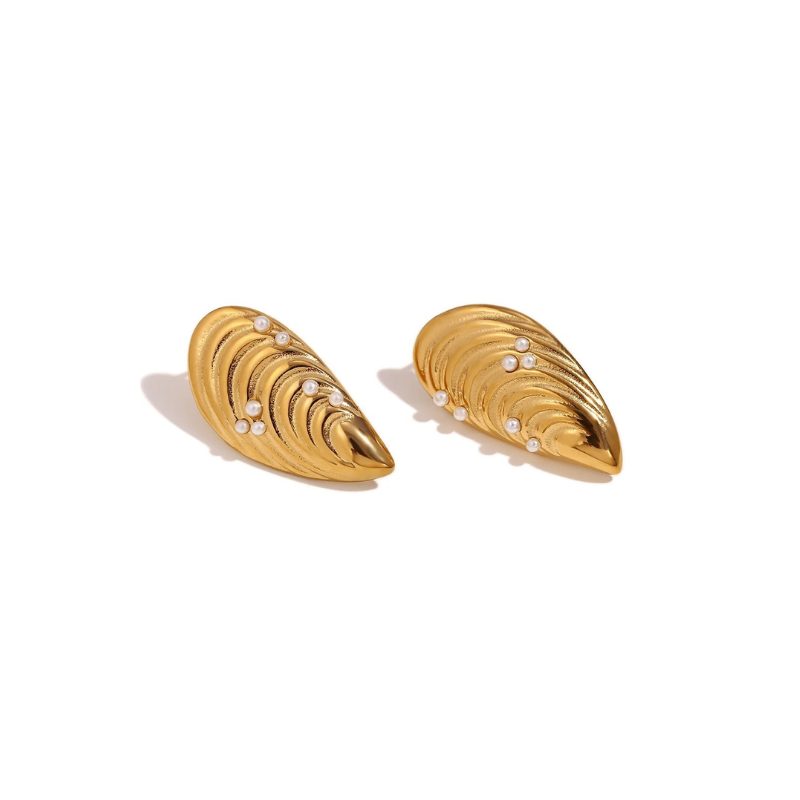 Deze elegante oorbellen in de vorm van een schelp geven je look een vleugje kustcharme. Ze zijn water-, zweet- en hittebestendig en blijven onberispelijk met een eenvoudig schoonmaakdoekje.