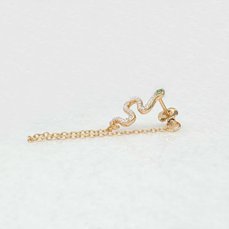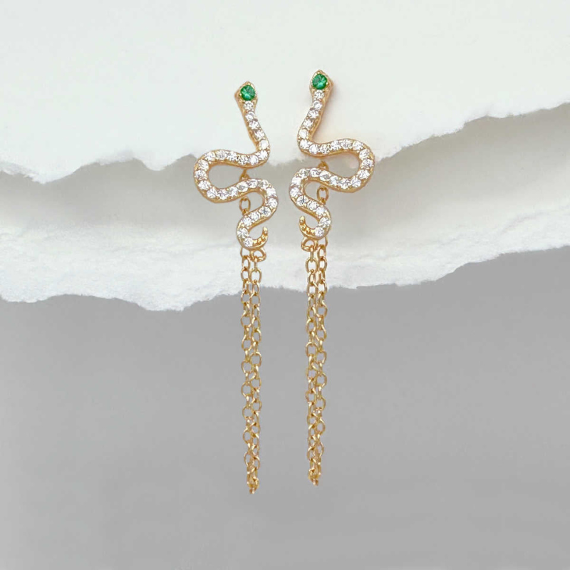 Geef je look een stoer maar toch elegant tintje met deze vergulde snake chain hoepel oorbellen. Met witte en groene zirkonia.