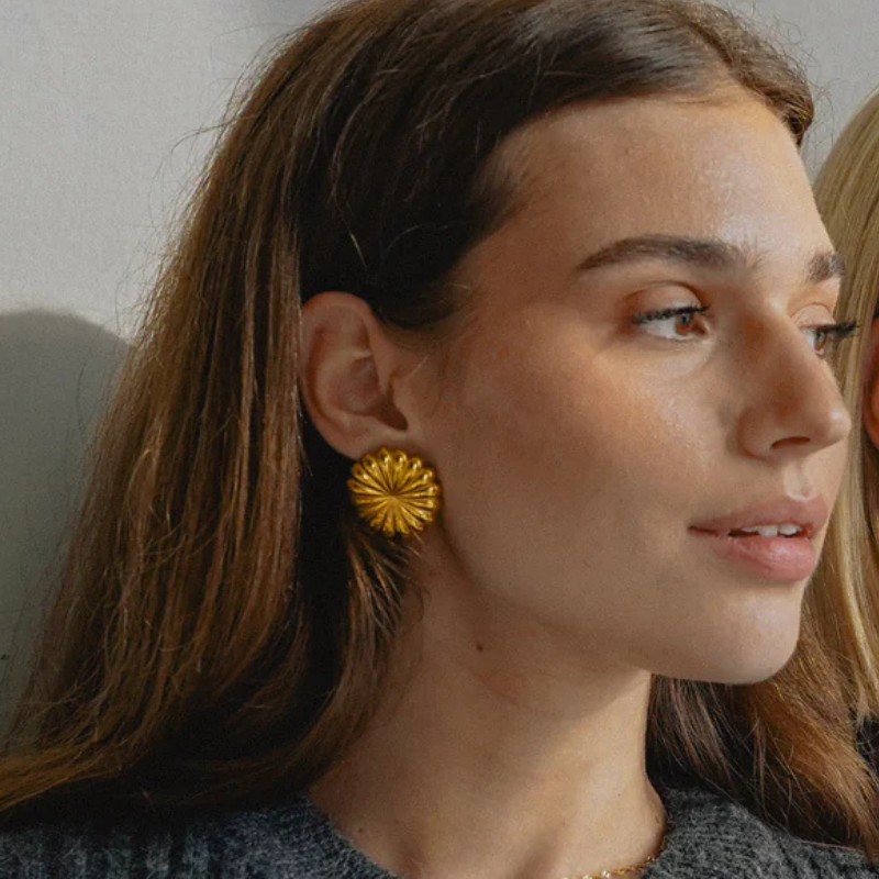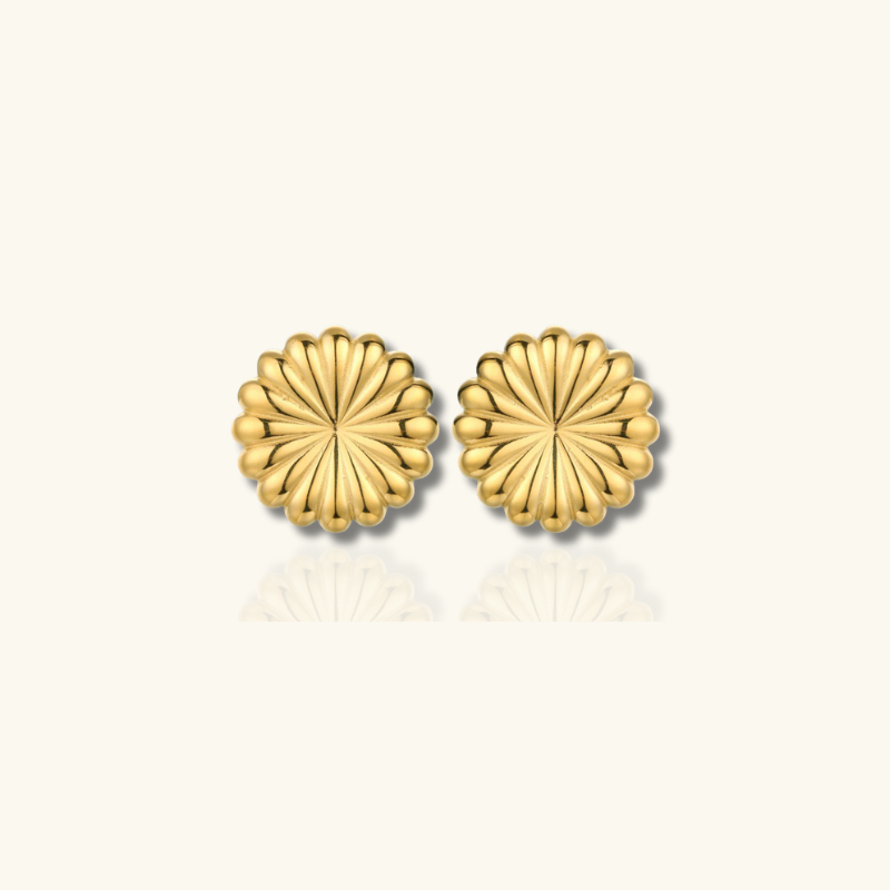 Voeg een vleugje vintage charme toe met deze elegante bloemknoopoorbellen. Ze zijn gemaakt van roestvrij staal en gecoat in 18K goud en passen prachtig bij gouden kettingen en ringen.