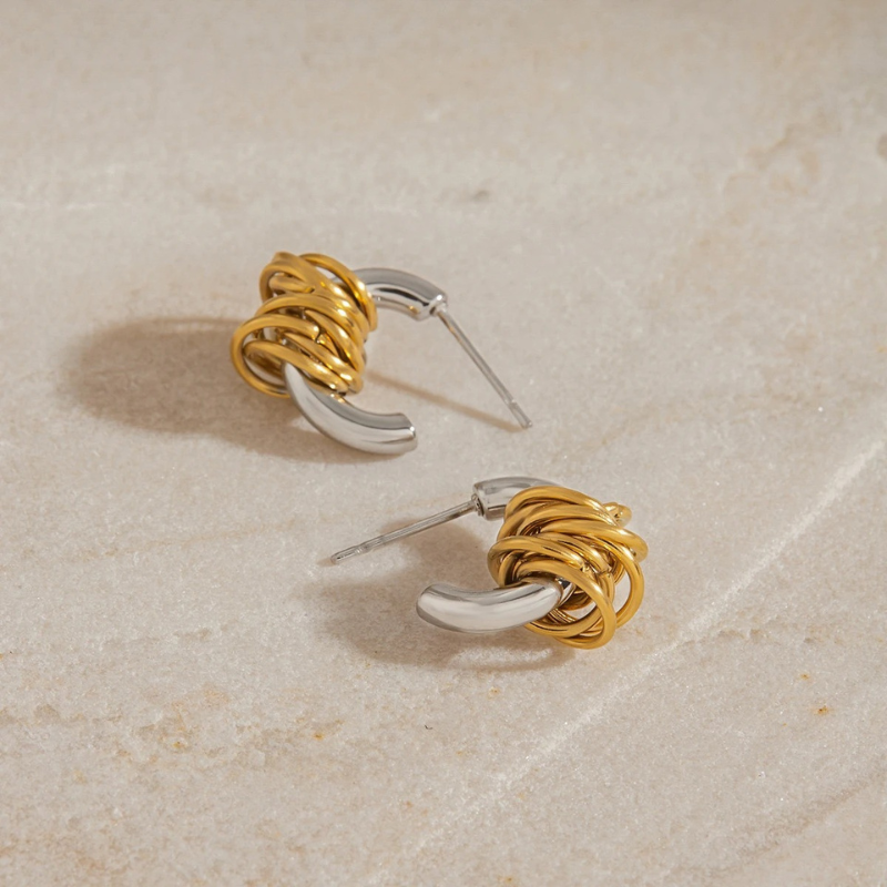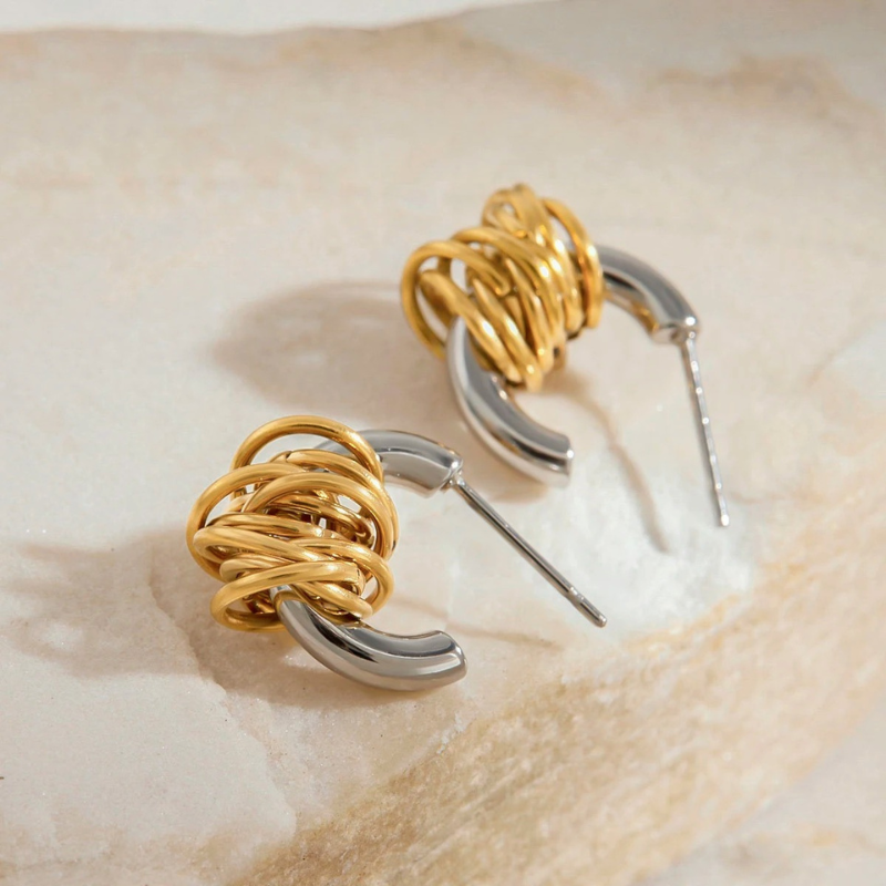 Tweekleurige Geometrische Gelaagde C-vormige Oorknopjes – Yara