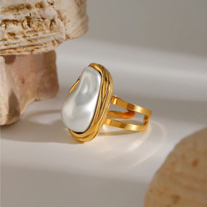 Deze Vergulde Barok Grote Parel Ring - Lynn zijn perfect om een vleugje verfijning toe te voegen aan elke outfit. Maak ze schoon met een zachte doek voor blijvende glans en combineer ze met casual of formele kleding voor een veelzijdige styling.