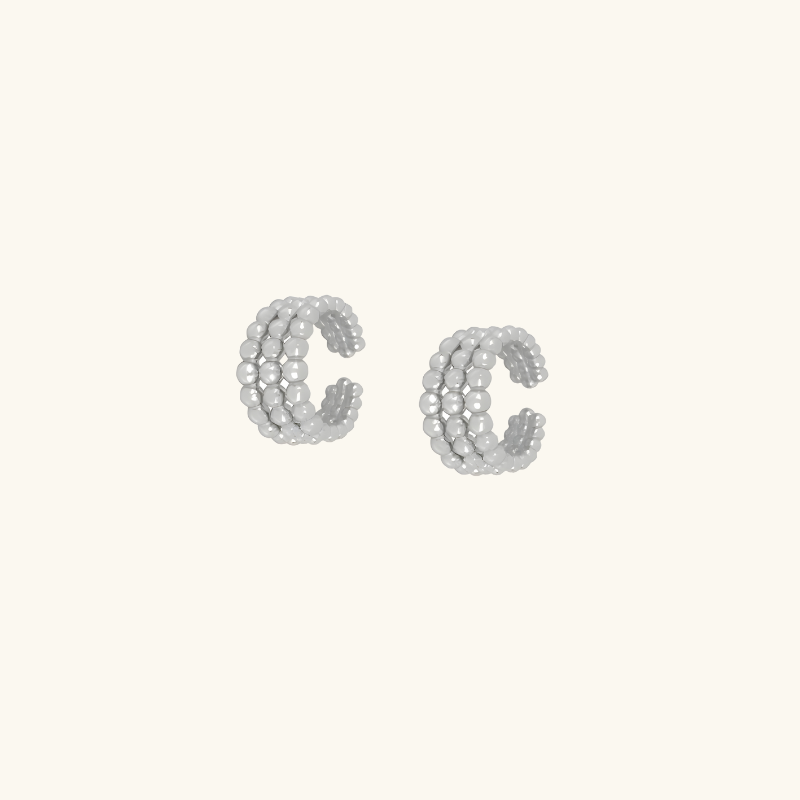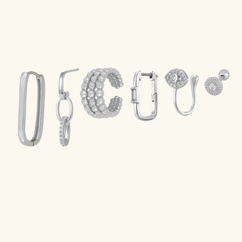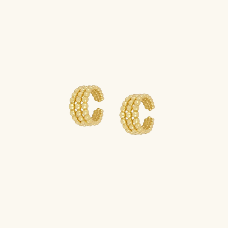Deze stijlvolle vergulde set oorbellen heeft trendy hoepel- en knopjesontwerpen voor een gedurfde, gelaagde look. Droog bewaren en schoonmaken voor langdurige glans.