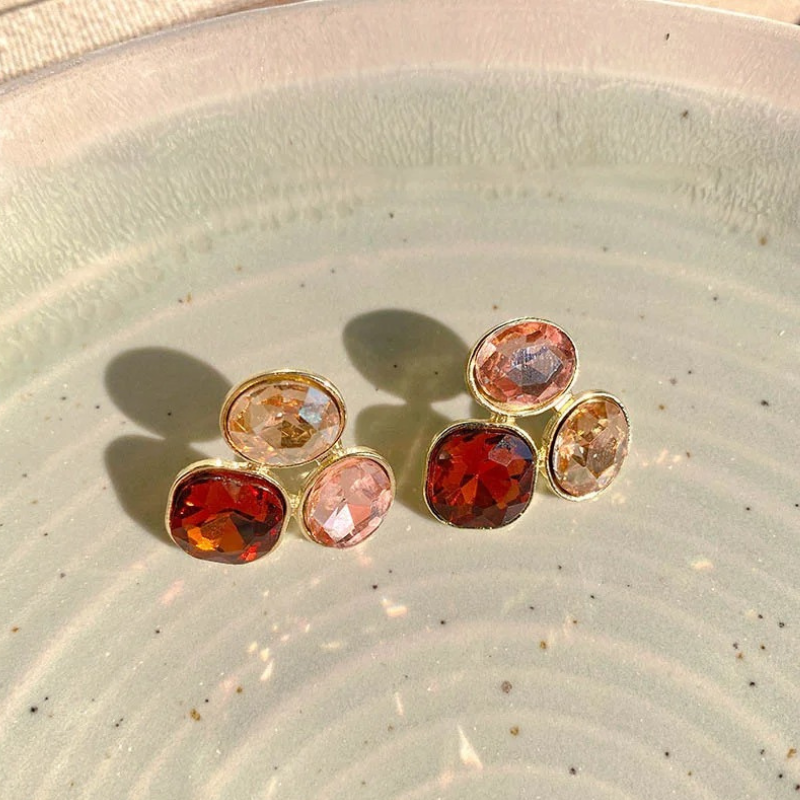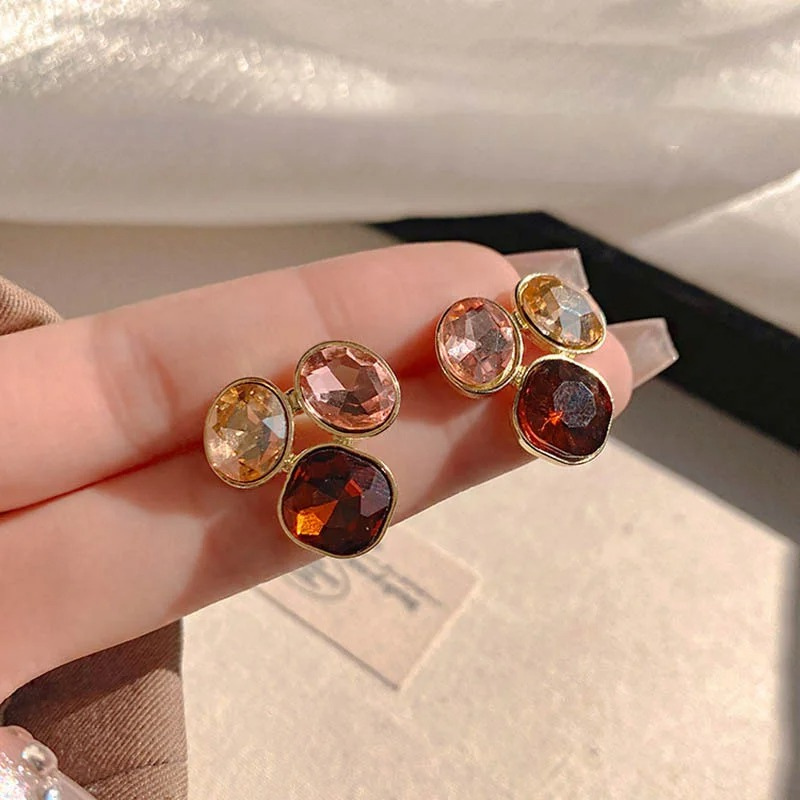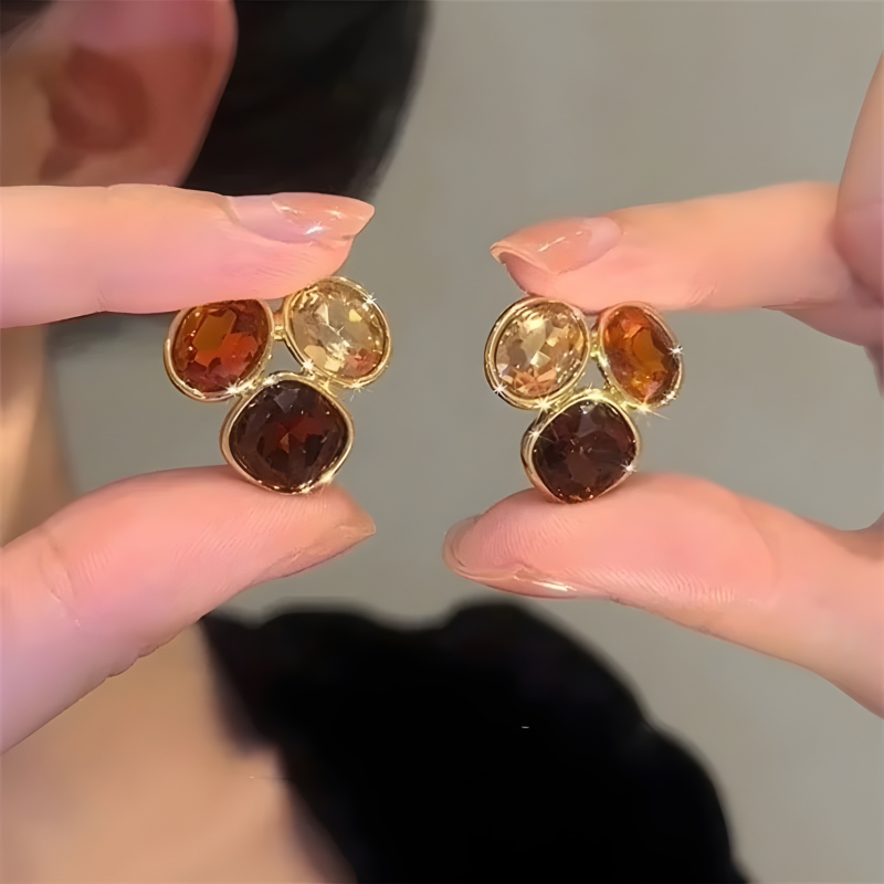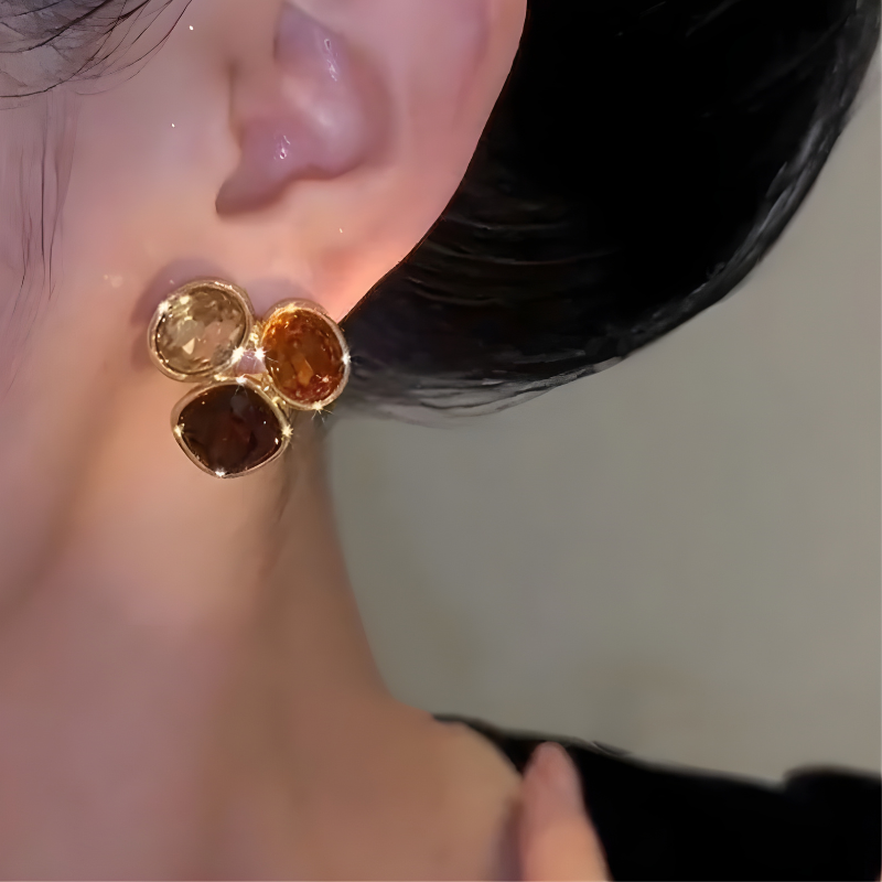 Deze Vergulde Bruine Kristallen Stud Oorbellen - Ina combineren champagne, blush en diepe koffietinten in een chique gouden setting - perfect voor dagelijks gebruik, werk of evenementen.