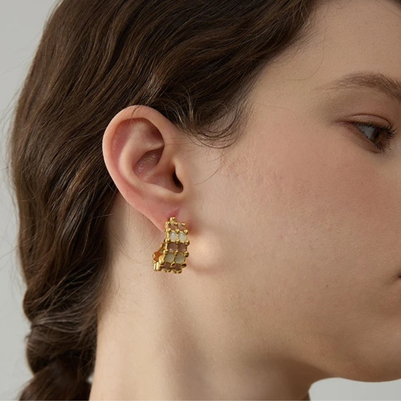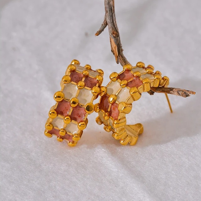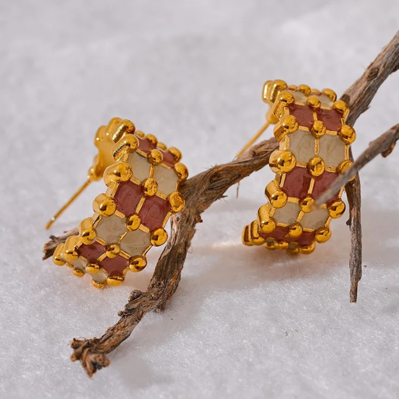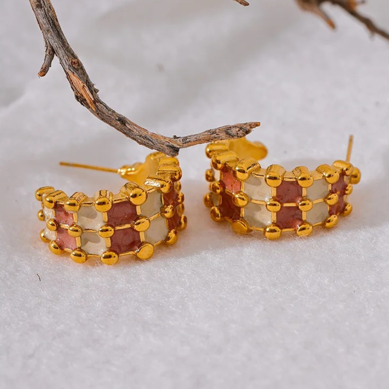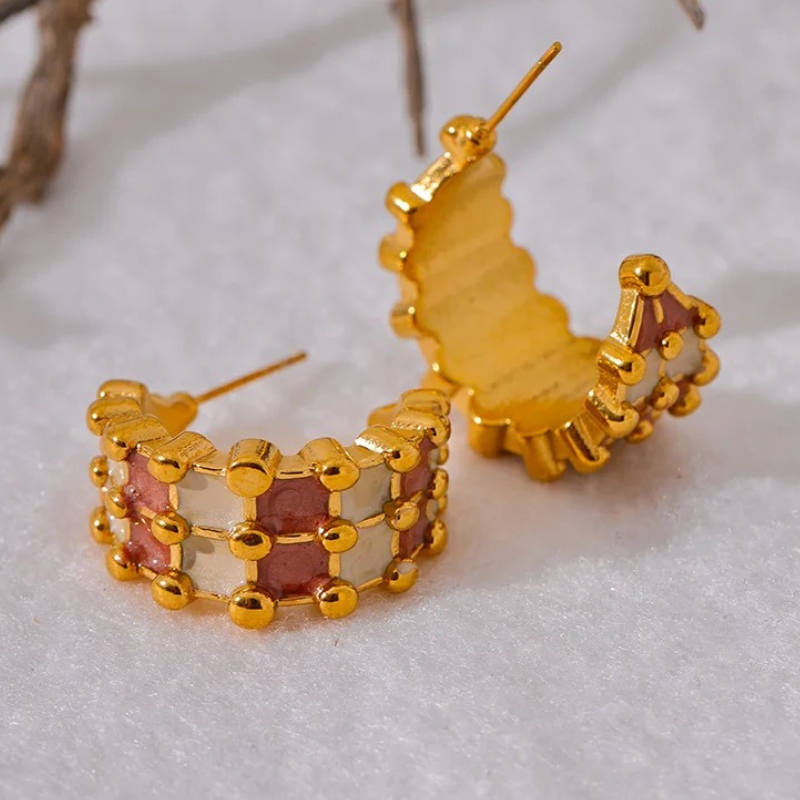 Vergulde C-Vormige Emaille Oorknopjes - Delia