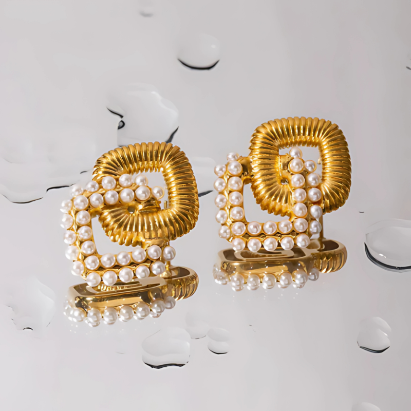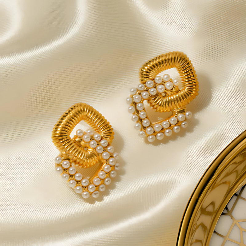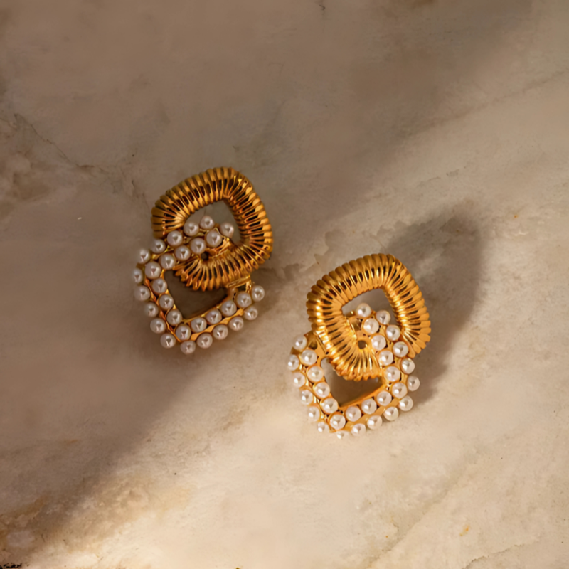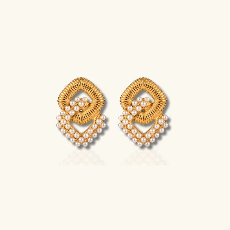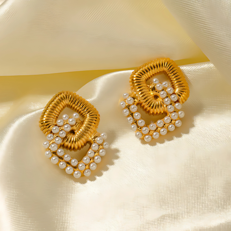 Voeg vintage glamour toe met deze Vergulde Dubbellaagse Pareloorbellen - Janelle, ideaal voor bruiloften, partijen of avondlooks. Ontworpen voor comfort met een push-back sluiting