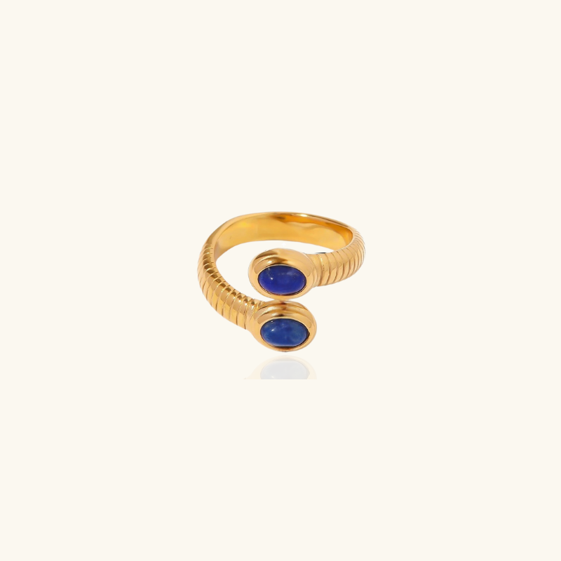 Deze prachtige Vergulde Natuurstenen Open Ring - Toni is het perfecte accessoire voor een bohemian vibe. Draag hem om een unieke touch aan je outfit te geven en reinig hem met een zachte doek om de glans te behouden.