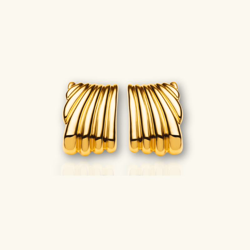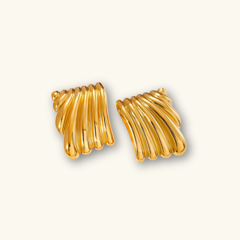 Deze Vergulde Onregelmatige Geplooide Oorbellen - Shelley verheffen elke outfit met hun opvallende geribbelde ontwerp. Perfect voor dagelijks gebruik of een avondje uit. Combineer met gelaagde kettingen of minimalistische studs. Schoonmaken met een zachte doek.