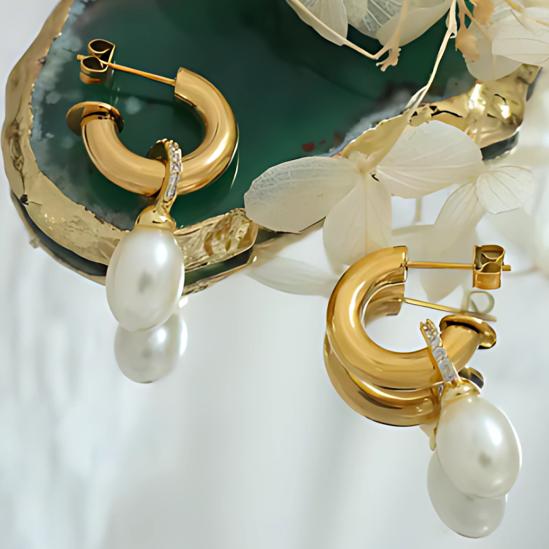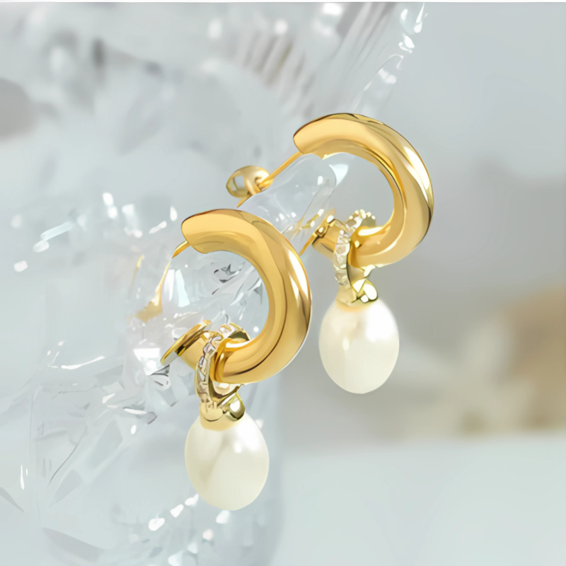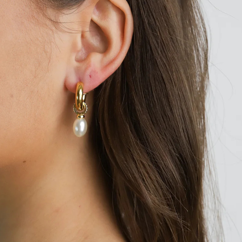 Vergulde Parel Druppel Oorbellen - Leslie