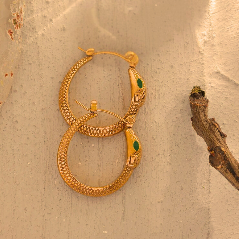 Vergulde Slang Hoepel Oorbellen - Ellen