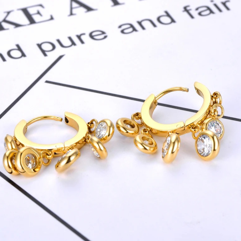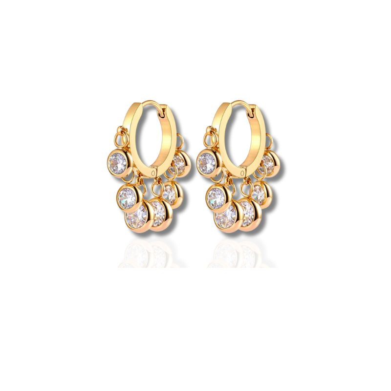 Vergulde Trendy Hoepeloorbellen met Zirkonia - Hana