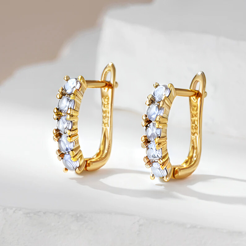 Elegante Vergulde Zirkoon Hoepel Oorbellen - Shelley met fonkelende zirkonia, perfect voor dagelijks gebruik of speciale gelegenheden. Combineer met een gouden ketting voor een chique look.