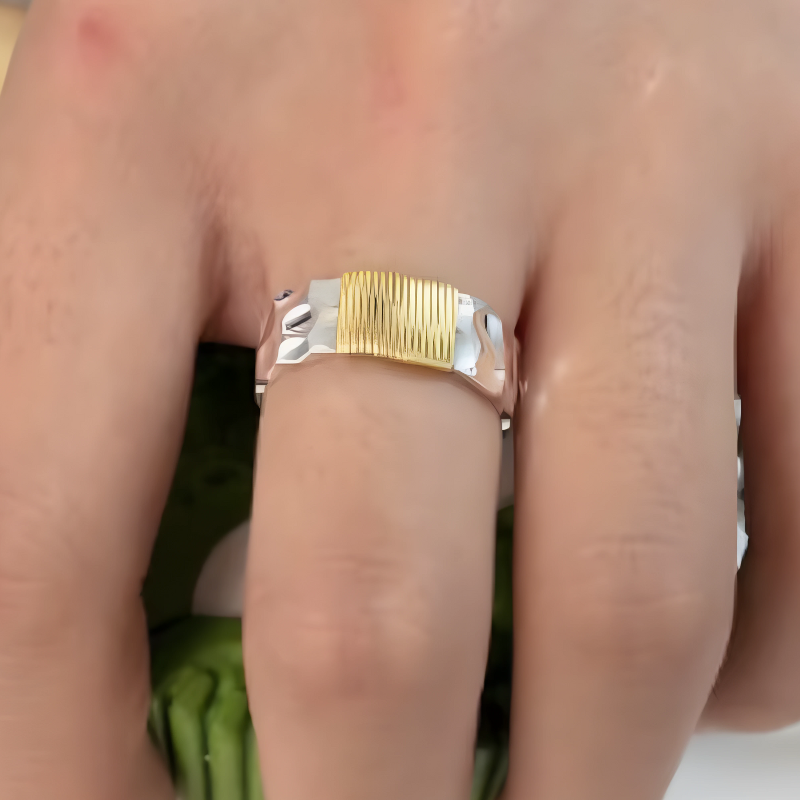 De Vintage Gouden Draad Zilveren Ring is ontworpen voor degenen die elegantie waarderen met een moderne twist. Dit prachtige sieraad heeft gouden draden die kunstig in een zilveren band zijn geweven, wat zorgt voor een uitstraling die zowel klassiek als uniek is. Perfect voor elke gelegenheid, het is een ring die spreekt van verfijnde stijl en ingetogen luxe.