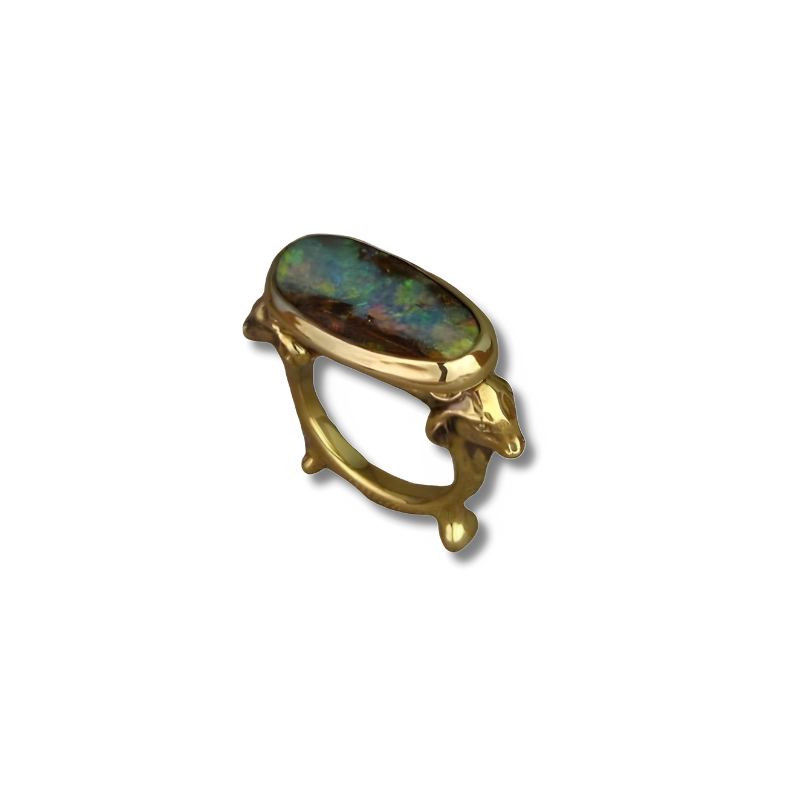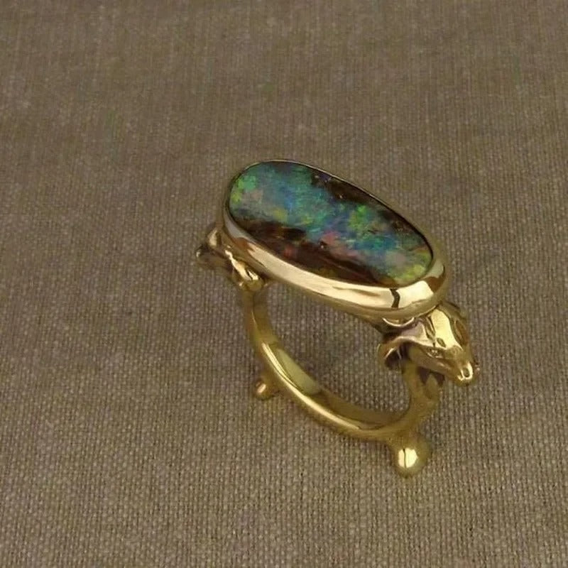 Omarm de tijdloze allure van opalen met een explosie van levendige kleuren die vanuit elke hoek betoveren. Deze vintage-geïnspireerde opaalring toont een scala aan tinten, waardoor een magisch, uniek stuk ontstaat dat zeker de aandacht trekt. Gezet in een klassieke gouden band, ontworpen om een unieke charme aan elke outfit toe te voegen, dag en nacht.
