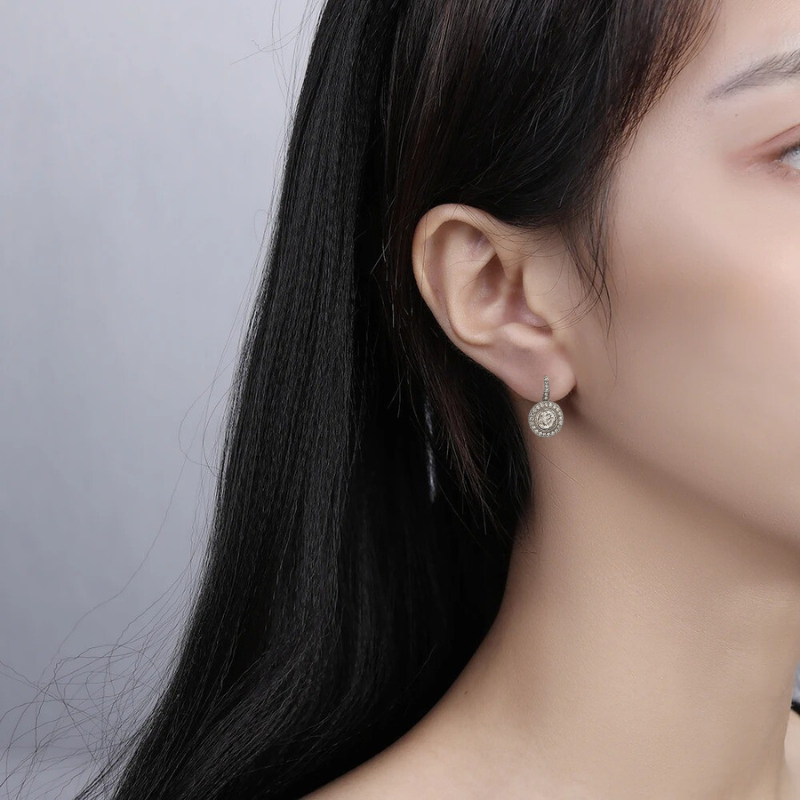Deze Vintage Zilveren Oorbellen Met Zirkonia | Zilver hebben een stralend wit kristallen middenstuk, omringd door kleinere kristallen. Ze zijn ideaal voor zowel casual als formele gelegenheden en geven elke outfit een verfijnde touch.
